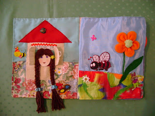 carticica pentru copiii intre 2 si 5 ani, cusuta din diferite materiale textile.